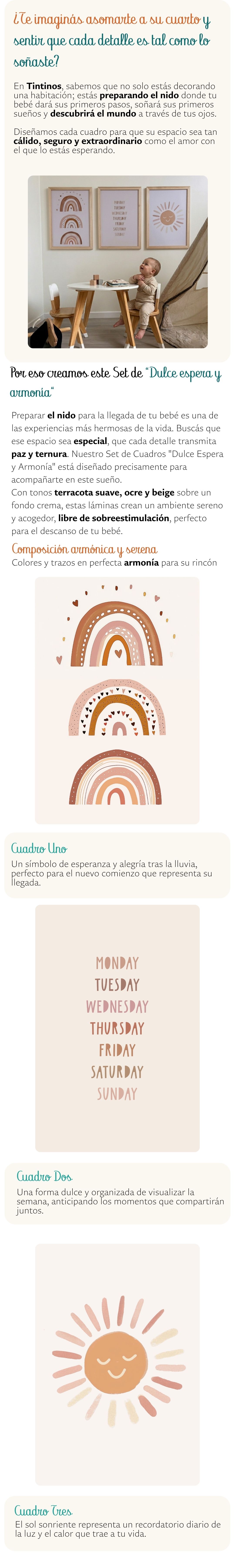 Set de 3 Cuadros Infantiles Arco Iris Sol Días